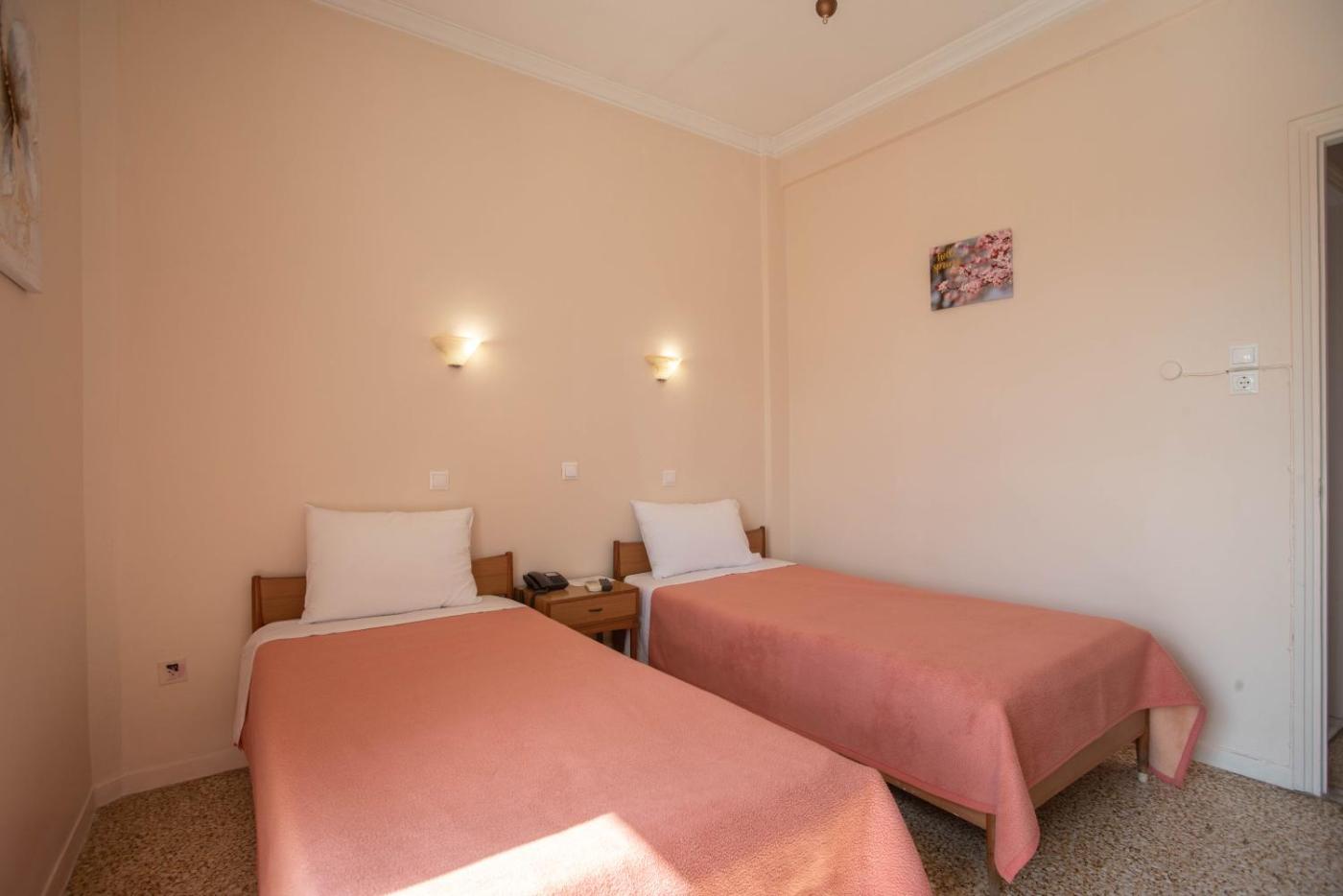 Twin Room. This twin room has a balcony overlooking the archaeological museum of the city. Its area is 18 m². It has minibar, TV, free wireless internet, hairdryer and air conditioning. ;