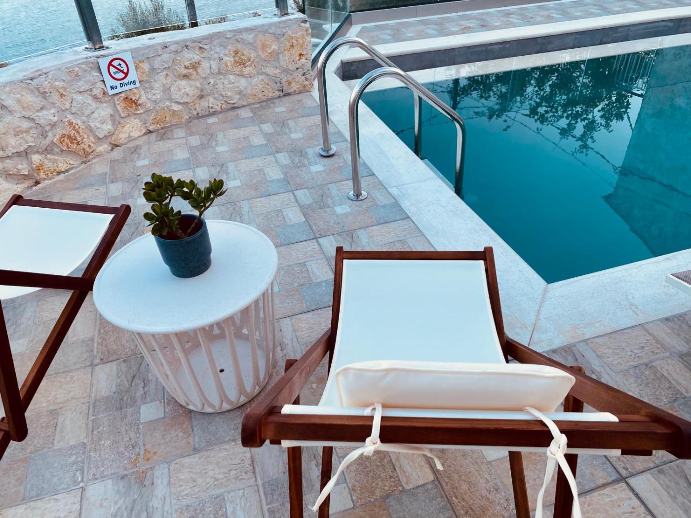 Two-Bedroom House. This holiday homes standout feature is the pool with a view. Boasting a private entrance, this air-conditioned holiday home includes 1 living room, 2 separate bedrooms and 1 bathroom with a shower and a hairdryer. The well-equipped kitchen has a stovetop, a refrigerator, kitchenware and an oven. Featuring a terrace with sea views, this holiday home also offers a washing machine and a flat-screen TV. The unit has 3 beds.