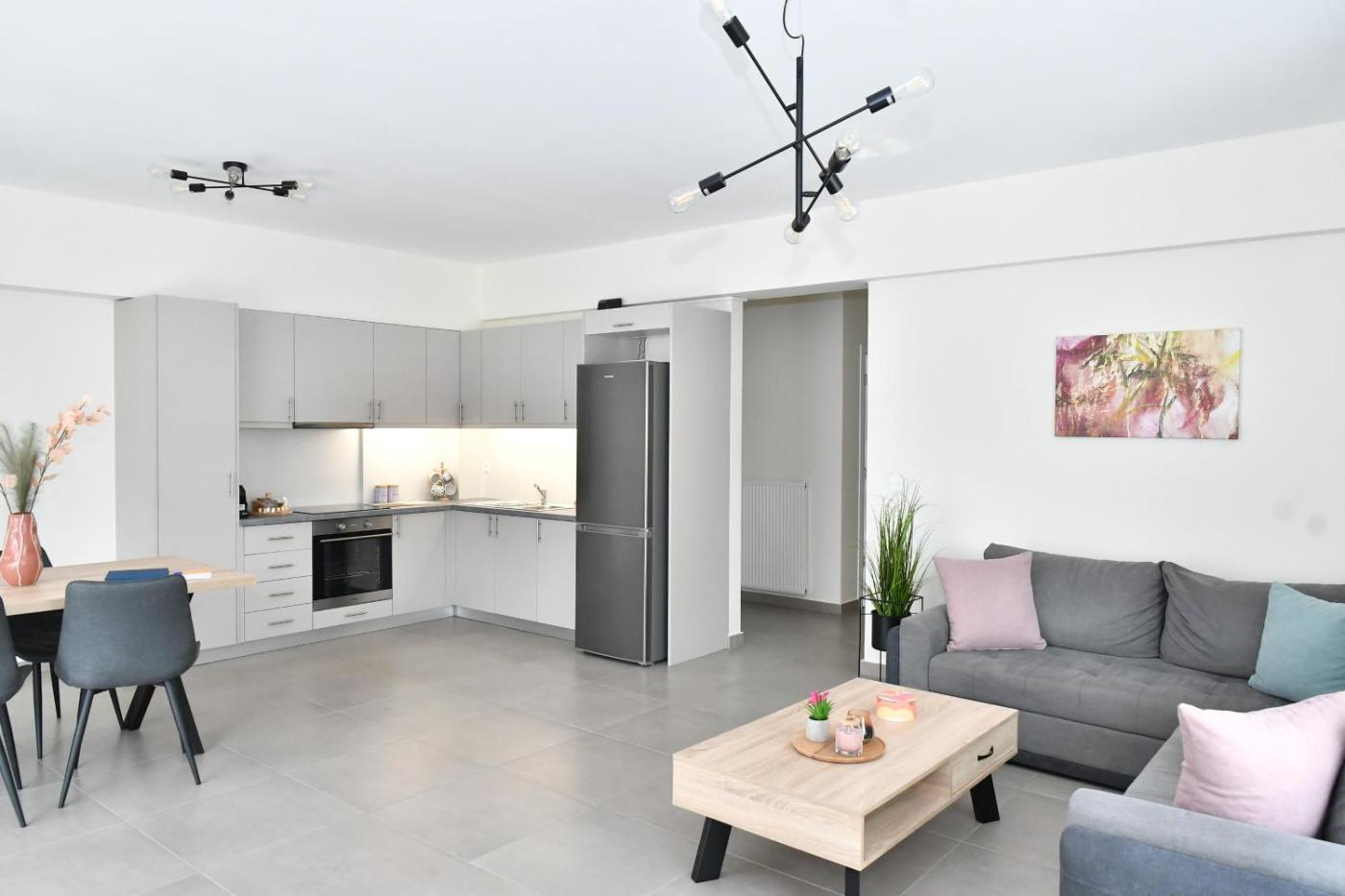 Two-Bedroom Apartment. This spacious apartment includes 1 living room, 2 separate bedrooms and 1 bathroom with a walk-in shower and free toiletries. The fully equipped kitchen has a stovetop, a refrigerator, kitchenware and an oven. This air-conditioned apartment comprises a dining area, a flat-screen TV with streaming services a washing machine and a terrace. The unit has 4 beds.